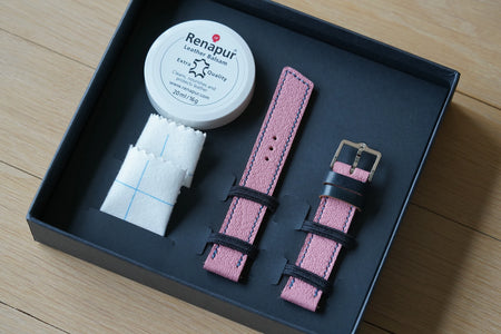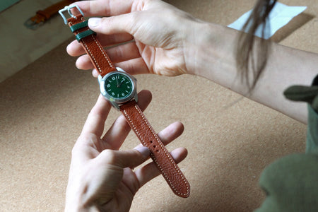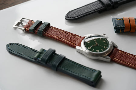 We work with the highest quality leather, sourced from respected tanneries including Horween, Badalassi Carlo and Haas. These leathers have been carefully chosen for their grain classification, durability, comfort and appearance. Samples will give a very good idea of the final result; however, as leather is a natural material, the final strap may show slight differences.