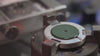 The ink is poured onto a printing plate (also known as a cliché) that has been engraved with the dial design, to the remarkably minuscule depth of 24 microns (0.024mm). Watchmakers often use metal clichés, but we’ve found a ceramic plate to be more durable and produce a cleaner print. A hydraulic-powered arm disperses the ink across the plate and into the engraved design, then scrapes away the excess. A silicone pad picks up the inked design, which can then be transferred onto the enamelled dial.