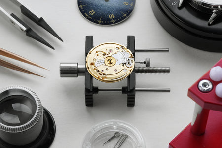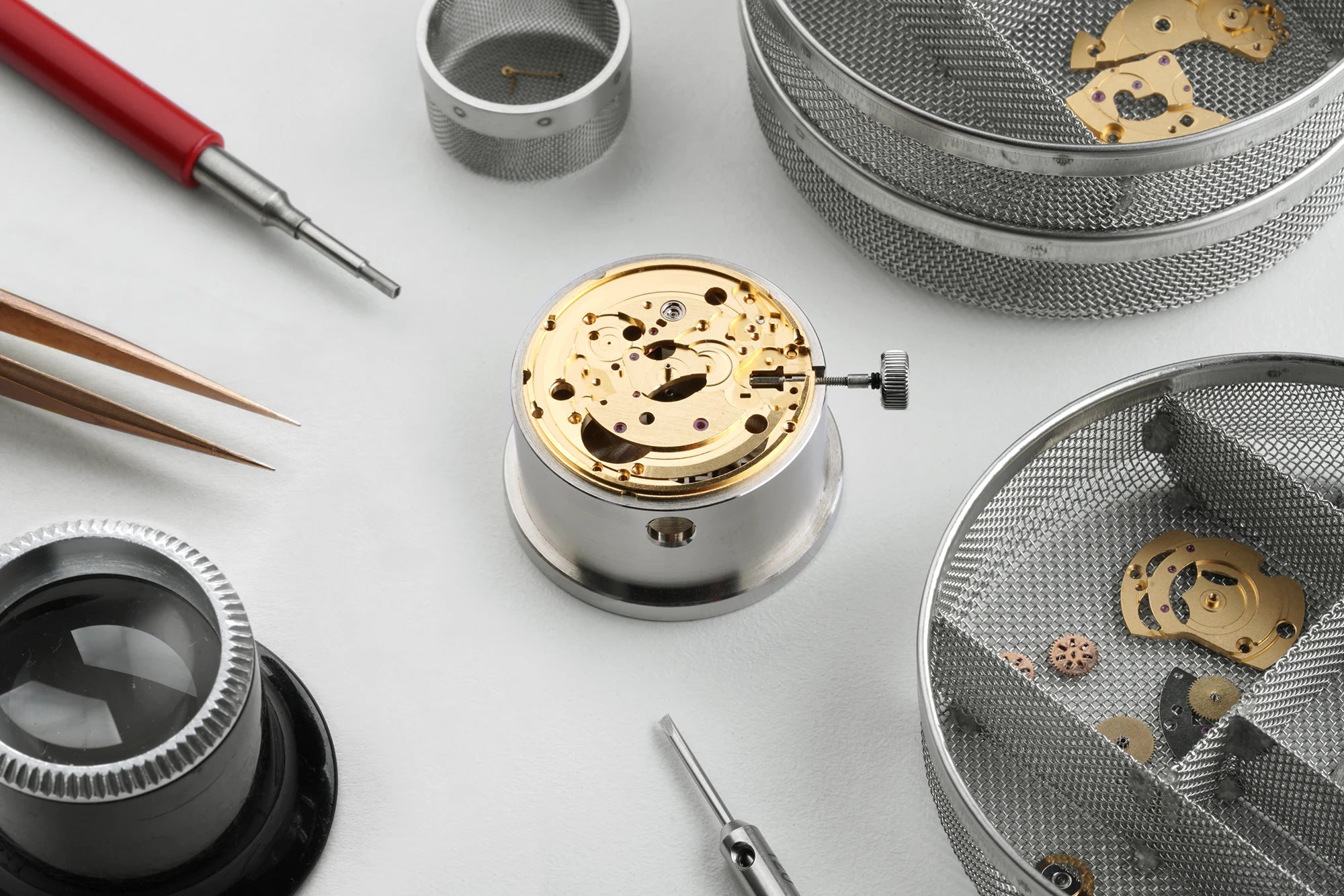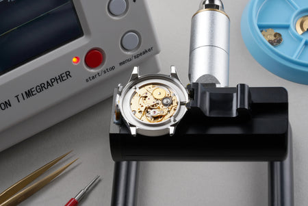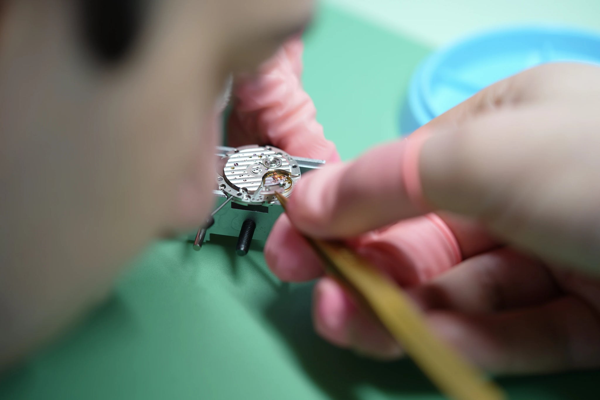 Our watches run on good quality Swiss movements from La Joux-Perret G101, Sellita and ETA, chosen by us for their adaptability, reliability and ease of service. We receive them at our Glasgow workshop, where they are modified to our needs, regulated and assembled into cased-up watches.