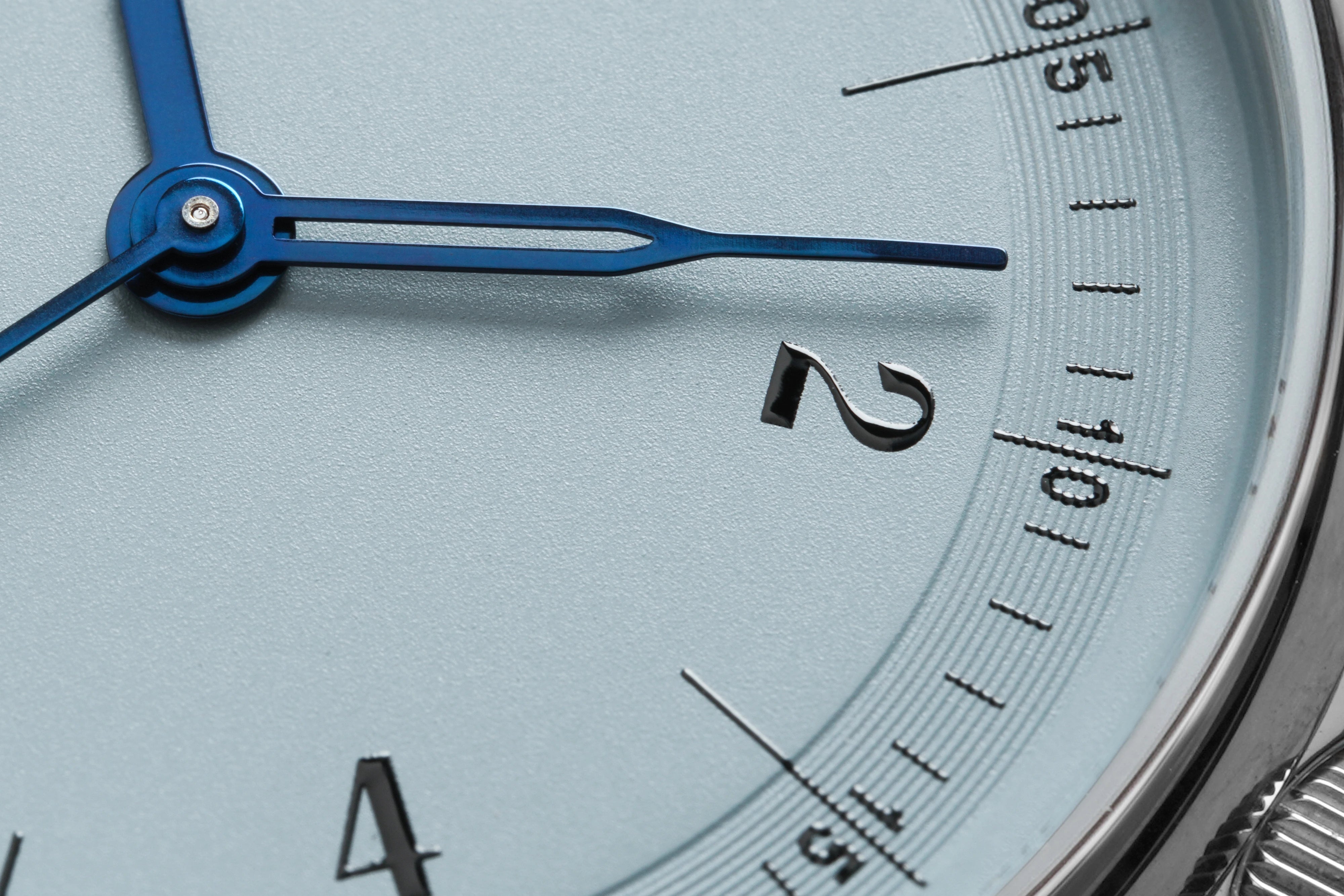 The Fabrik collection offers an alternative look at the Model 1, with semi-matte lacquer dial colours inspired by the earthy tones of the Highlands. The Fabrik uses our medium sized case, a comfortable 38mm diameter with 11mm depth.