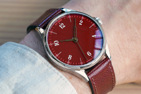 This rich mahogany kid skin is soft and supple yet hard-wearing. The surface of the leather has a wonderful grained texture that sits beautifully against the case and dial of any anOrdain watch.