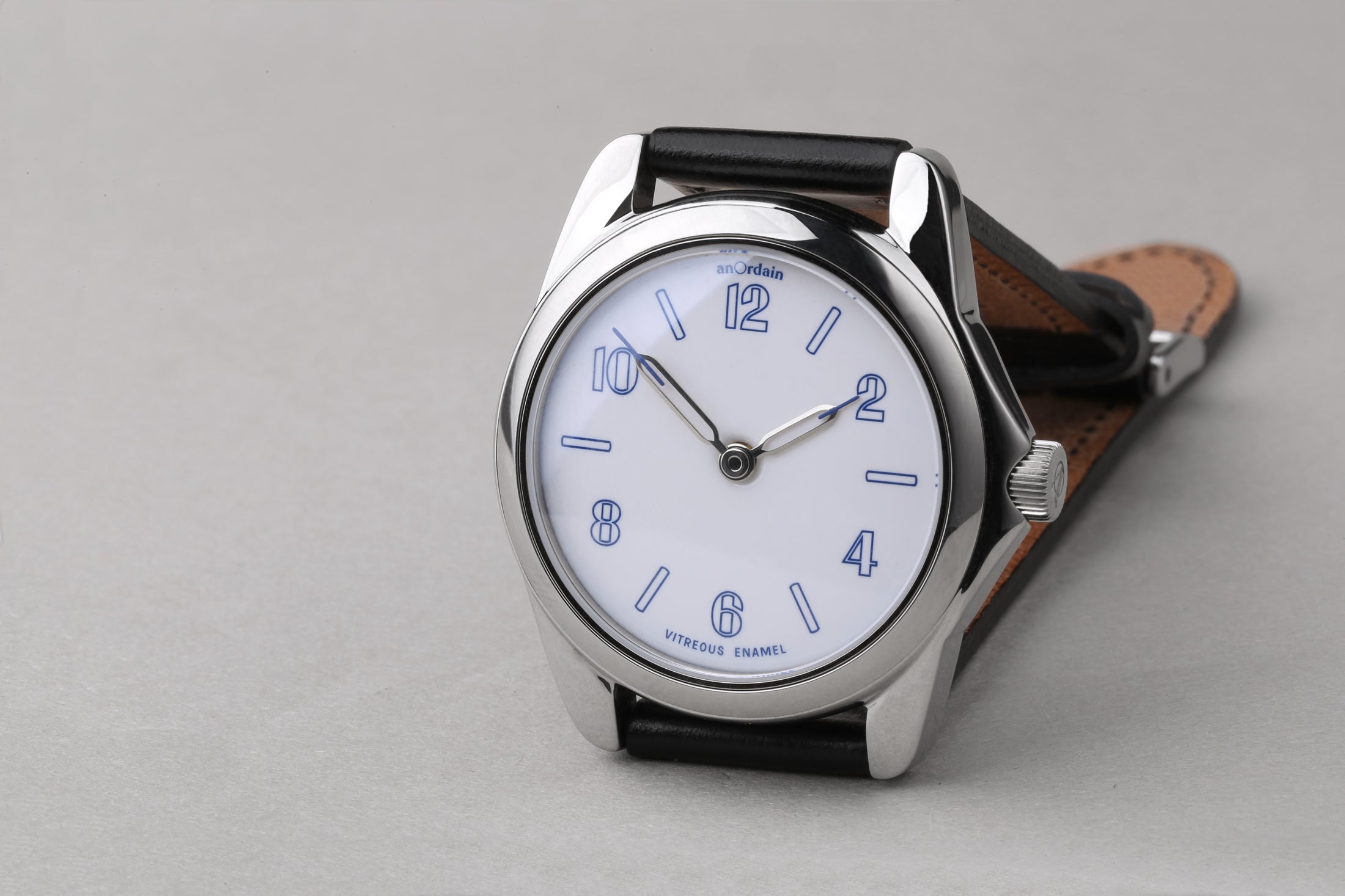 We spent a lot of time working with white enamel in the early days of anOrdain, but with so many colours to choose from it was ultimately overlooked as a choice for our first release. When we prototyped this dial we knew it had to make the line-up - the blue ink sets off the porcelainesque enamel evoking a sense of light, breezy summer days.